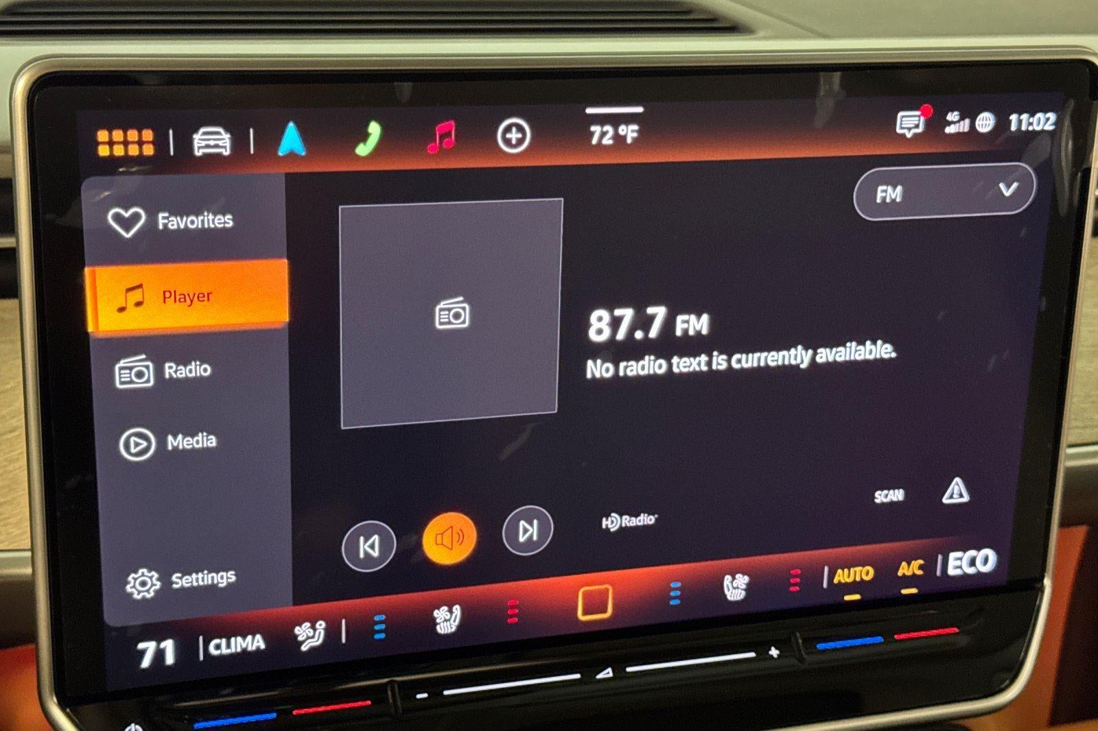 - Radio: Discover Pro Max w/Touchscreen Navigation -inc: 12.9 inch touchscreen multi-function center display w/backlit sliders, FM/HD Radio, WMA/MP3/FLAC media player w/voice control, Harman Kardon premium sound system w/13 speakers, subwoofer and amplifier, Bluetooth® connectivity (for compatible devices), SiriusXM w/360L (w/3-month free trial subscription; must accept SiriusXM terms), App-Connect smartphone integration (w/Apple CarPlay, Android Auto and MirrorLink) via USB, wireless App-Connect smartphone integration (for compatible devices) w/multi-phone pairing capability, capability for in-vehicle 4G LTE enabled Wi-Fi (cellular data plan required; includes limited trial), capability for VW Car-Net services (capabilities for certain services vary; requires enrollment or subscription) and Qi wireless inductive charger (for compatible mobile phones and accessories) in front row