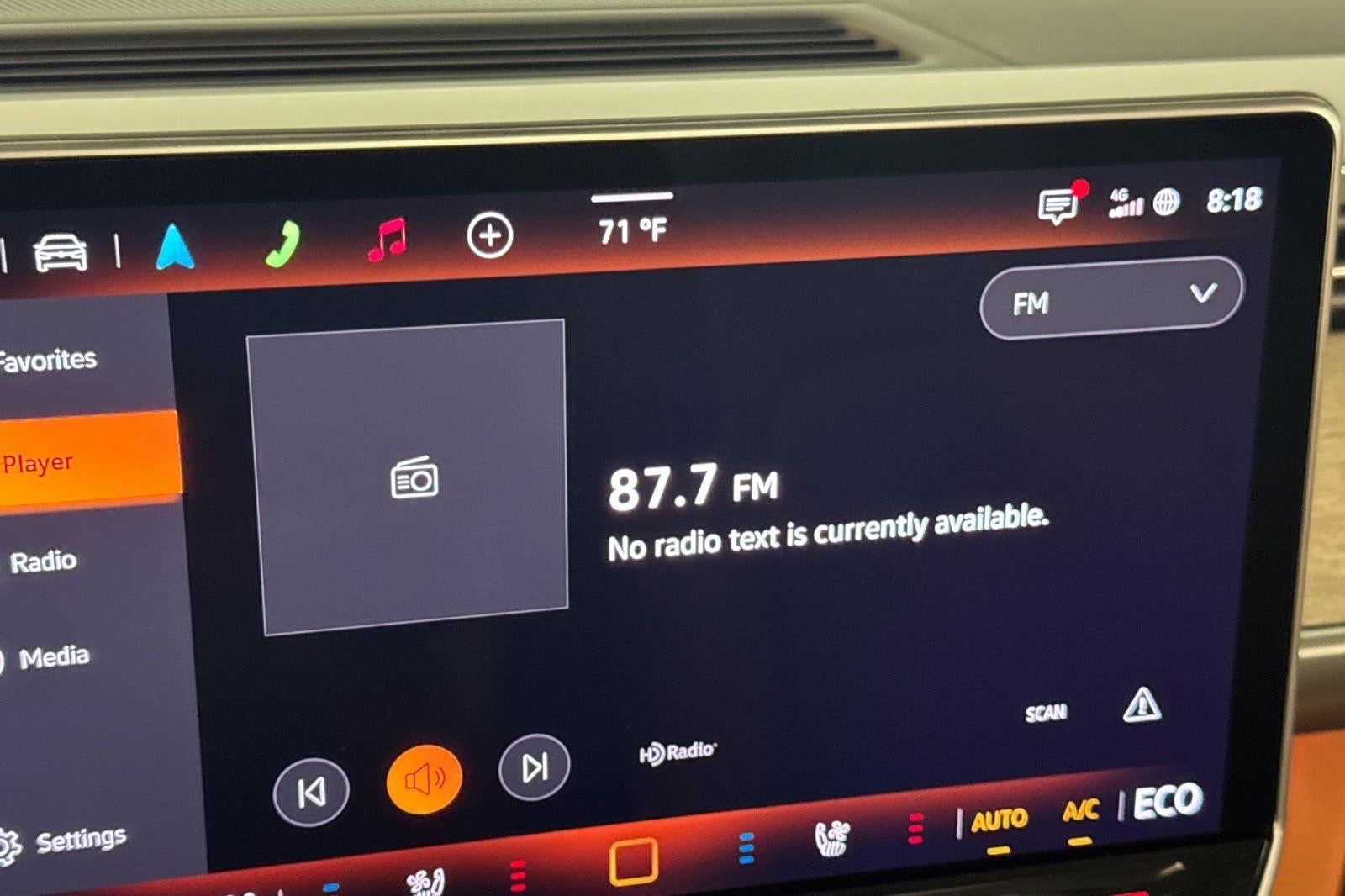 - Radio: Discover Pro Max w/Touchscreen Navigation -inc: 12.9 inch touchscreen multi-function center display w/backlit sliders, FM/HD Radio, WMA/MP3/FLAC media player w/voice control, Harman Kardon premium sound system w/13 speakers, subwoofer and amplifier, Bluetooth® connectivity (for compatible devices), SiriusXM w/360L (w/3-month free trial subscription; must accept SiriusXM terms), App-Connect smartphone integration (w/Apple CarPlay, Android Auto and MirrorLink) via USB, wireless App-Connect smartphone integration (for compatible devices) w/multi-phone pairing capability, capability for in-vehicle 4G LTE enabled Wi-Fi (cellular data plan required; includes limited trial), capability for VW Car-Net services (capabilities for certain services vary; requires enrollment or subscription) and Qi wireless inductive charger (for compatible mobile phones and accessories) in front row