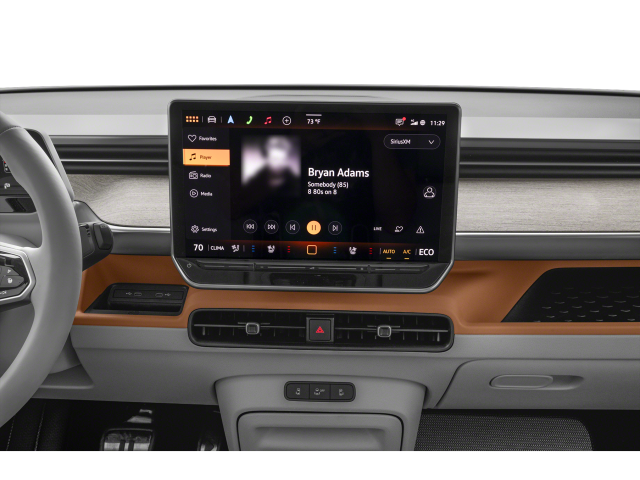 - Radio: Discover Pro Max w/Touchscreen Navigation -inc: 12.9 inch touchscreen multi-function center display w/backlit sliders, FM/HD Radio, WMA/MP3/FLAC media player w/voice control, Harman Kardon premium sound system w/13 speakers, subwoofer and amplifier, Bluetooth® connectivity (for compatible devices), SiriusXM w/360L (w/3-month free trial subscription; must accept SiriusXM terms), App-Connect smartphone integration (w/Apple CarPlay, Android Auto and MirrorLink) via USB, wireless App-Connect smartphone integration (for compatible devices) w/multi-phone pairing capability, capability for in-vehicle 4G LTE enabled Wi-Fi (cellular data plan required; includes limited trial), capability for VW Car-Net services (capabilities for certain services vary; requires enrollment or subscription) and Qi wireless inductive charger (for compatible mobile phones and accessories) in front row