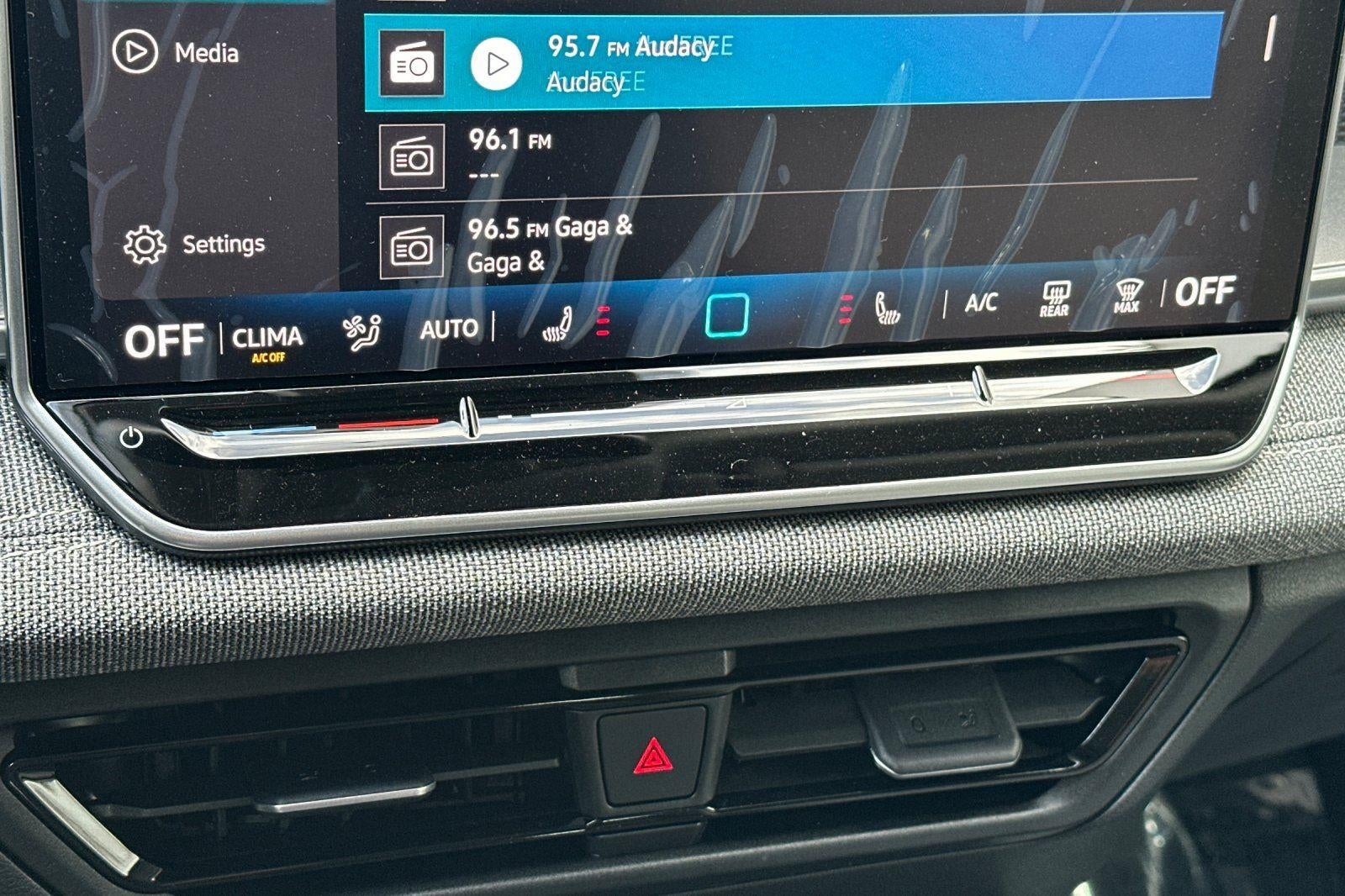 - MIB4 Composition Media Touchscreen w/AM/FM Radio -inc: WMA/MP3/FLAC player w/USB, 12.9" touchscreen multi-function center display w/backlit sliders, voice control, 6 speakers + center speaker (7 speakers total) sound system, capability for in-vehicle 4G LTE enabled Wi-Fi (cellular data plan required; includes limited trial), capability for connected vehicle services (capabilities for services vary; requires enrollment or subscription), Bluetooth® connectivity (for compatible devices), SiriusXM w/360L (w/3-month free trial subscription; 360L services require acceptance of Car-Net terms), App-Connect smartphone integration (w/Apple CarPlay, Android Auto and MirrorLink) via USB, wireless App-Connect smartphone integration (for compatible devices) w/multi-phone pairing capability, 45W fast charging (for compatible mobile phones and accessories) via USB in both rows and Qi wireless inductive charger, cooled, up to 15W (for compatible mobile phones and accessories) All connected vehicle services are subject to terms and limitations. Some services require a paid subscription. See dealer or vw.com/connected for important details.