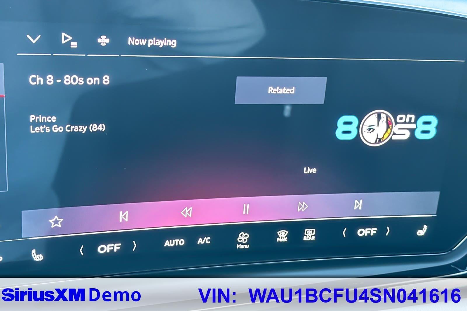 - Radio: Audi Sound System -inc: Audi connect CARE (limited time subscription), Audi connect NAV & PLUS (limited time subscription, accept terms required), Audi MMI navigation plus, Audi smartphone interface (wireless Apple CarPlay and Android Auto), MMI touch display w/14.5" center screen and SiriusXM w/360L (3-month trial)